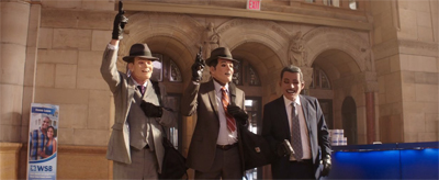 This heavy-handedness recurs throughout the film. Going in Style bends over backwards to assure audience members that the characters are fundamentally decent people. They are in a tough situation, but their turn to crime should be considered a morally ambiguous act. The characters are only robbing the bank foreclosing on Joe’s house, and which is handling the dissolution of their pension fund. They make a point that the only people who will suffer are the insurance company, and they they can handle it.