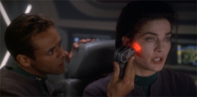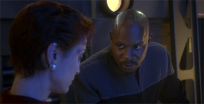 It’s difficult to conceive of DS9 trying a story like this on for size a year ago. The show’s ambitions are in a very different place now from where it first started, where it was often called TNG-lite back in the early days. But even TNG would never have attempted something like One Little Ship. It’s like the writers reconceived Fantastic Voyage as a Trek episode (in both cases, a beautiful woman is along for the ride).