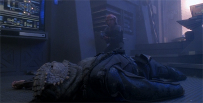 Indeed, Ixtana’Rax ends up lying against the warp core with a hole burnt through his chest. He is clearly dying. Sisko leans over him, and there is a moment of respect for the fallen foe. “He should’ve listened to you and killed me when he had the chance,” Sisko admits of the deceased Kudak’Etan. Ixtana’Rax disagrees. “He was a First,” Ixtana’Rax insists. “They don’t need to listen. Obedience brings victory… and victory is…” Ixtana’Rax dies before he can complete the cliché, underscoring the tragedy of the Jem’Hadar.