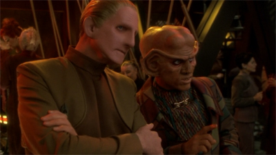 Indeed, there are quite a few narrative dead-ends over the seven-season run of Deep Space Nine. The character of George Primmin disappeared into the ether after appearances in The Passenger and Move Along Home. The station never had much luck with the Romulans either. Subcommander T’Rul was established at the Romulan emissary in The Search, Part I and The Search, Part II, never to appear again. Senator Cretak was introduced to fill a similar role in Image in the Sand and Shadows and Symbols, only appearing again in Inter Arma Enim Silent Leges.