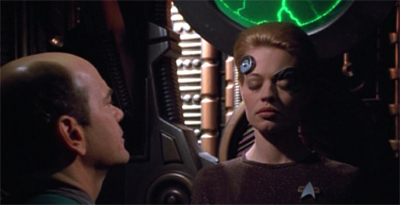 The implication is that Seven made a mistake and should feel guilty. This is very much at odds with the implication that EMH made the mistakes, in terms of using a regression therapy in which he was not qualified and investing so emotionally in the outcome of the case. Retrospect wants to have the worst of all worlds, denying Seven of Nine any tangible agency in the investigation while still holding her to account for the tragic outcome.