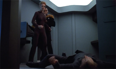Retrospect certainly plays into this, suggesting that Seven of Nine is effectively relegated to the role of passenger in the pursuit of Kovin. In this investigation, Seven is robbed of her agency.