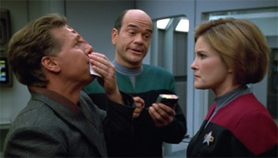 Then again, perhaps Retrospect is aiming its criticism more at the EMH than at Seven of Nine. After all, he is the character who really pushes for Kovin to be held accountable. As Robert Picardo acknowledges in Cinefantastique, the EMH actually has a full character arc over the course of the episode: