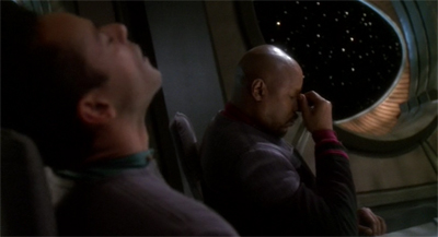 But this was one of the episodes I did remember, and I remembered it because of the paranoia and the shock of discovering the Federation’s underbelly. Very cool. Very X-Files. All those onion layers of false reality, peeling off one by one. At the end of the episode, even after his debriefing with Sikso et al, I was left with the sense that Julian was still not absolutely sure he was back in the “real” world.