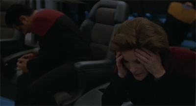 It is a marked contrast with the more effective and emotive scenes that the two characters share in episodes like Scorpion, Part I and Equinox, Part II. This is not simply conflict for the sake of conflict, it is accepting that two characters can hold two differing opinions. Deep Space Nine does this all the time, most notably with Sisko and Bashir butting heads in episodes like Battle Lines or In the Pale Moonlight. Their relationship is never particularly strained, and their conduct is never unprofessional, but the series acknowledges that the two characters have differing perspectives.