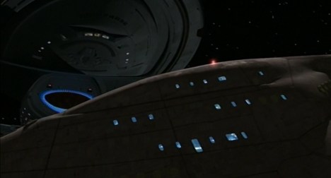 The crew discover an ancient network of relay stations in Message in a Bottle, a means of communication with the Alpha Quadrant. In the context of the episode, it provides an excuse for a fun runaround with special guest star Andy Dick fighting a bunch of Romulans. Given earlier episodes that reconnect the crew with the Alpha Quadrant, like Eye of the Needle, Non Sequitur, Death Wish, False Profits, Future’s End, Part I and Future’s End, Part II, it seems likely that this will be a self-contained episode with no lasting repercussions.