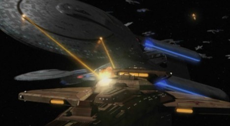 The Dominion War was a daring creative decision on the part of the production team, and one that could easily have backfired in a spectacular fashion. To be fair, the writers very shrewdly and very carefully seeded a lot of the preparations in the earlier seasons. This is true not only of plot points in episodes like Ties of Blood and Water or Blaze of Glory, but also in terms of the tone of episodes like The Ship and … Nor the Battle to the Strong or the special effects of episodes like The Way of the Warrior or Shattered Mirror.