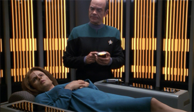 Still, these sorts of missteps are understandable and excusable. Even Deep Space Nine would occasionally fudge its long-form character plotting, most notably with the revelation that Bashir had been replaced by a changeling at some point in the fifth season. In Purgatory’s Shadow revealed that the doppel!doctor had performed complex brain surgery on Sisko in Rapture and had witnessed Odo regain his powers in The Begotten, which opens up all manner of awkward questions. However, these gaps could be glossed over if the resulting story was good enough.