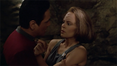 To be clear, there is a lot to love about Extreme Risk. Roxann Dawson does great work with the material, and this character development seems organic for Torres. Torres has always struggled with her emotions, and it seems logical that this anger and this guilt would eventually “overload”, whether rendering her emotional numb or simply channeling that anger back towards herself. Torres has always been the character on Voyager with the roughest edges, and the story seems particularly suited to this narrative.