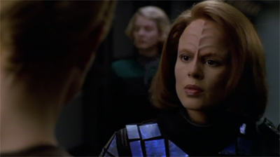 Explained Dawson, “We were talking about the nature of depression. I had some ideas for B’Elanna about exploring that side of her. I started to elaborate on some of my ideas, and they were really interested. They said, ‘We’ll do something with that,’ but I didn’t expect to hear anything. Then all of a sudden this episode was handed to me. It was really great to see some of my ideas about B’Elanna’s darker side explored by these writers.”