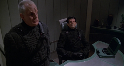 Cleverly, the writers decided to reverse the dynamic, and have Janeway fall for one of the evil!alien!space!Nazis. It is a potentially ridiculous twist, given that Kashyk should represent the very antithesis of everything that Janeway holds dear. However, that gives the script a lot of verve, as Joe Menosky explained to Cinefantastique:
