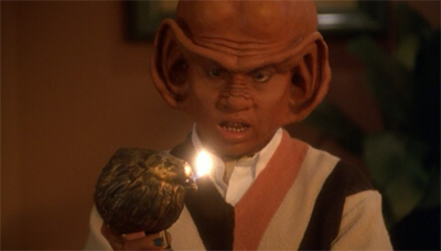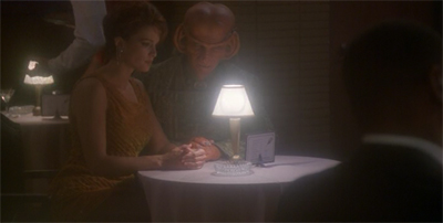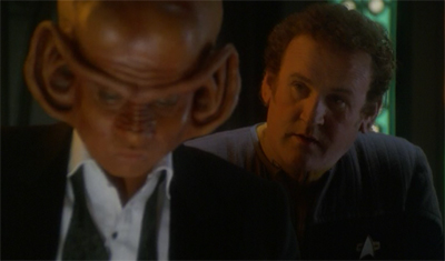 As with Starship Down, it is clear that Ordover and Mack knew what they were doing. The appeal of that story is fairly obvious to anybody with any understanding of television production. The idea of building an entire episode about one day spent at Quark’s is pragmatic and cost-effective. It is a “bottle show.” It is an episode that could be filmed on standing sets, with a minimum of special effects, with very few guest stares. Starship Down was a similar story, just using the Defiant sets rather than those on Deep Space Nine.
