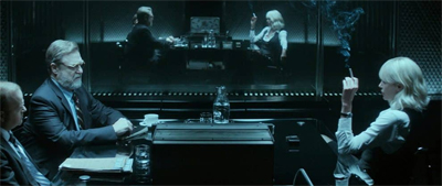 The characters in Atomic Blonde seems to desperate to assert their own sense of reality and self. There are moments when the characters seem almost aware of their existence within a movie. As Lorraine is debriefed by her handlers, she objects to the presence of a representative of the CIA. He volunteers to just watch from behind the screen. Trying to describe the mood in Berlin, Lorrain suggests that it is akin to a film reel caught in a projector, the film stuttering and eventually burning in front of the audience.