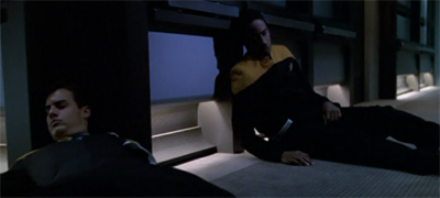 The fantasies in Bliss tease the crew with the possibility of reset buttons and do-overs. Chakotay is offered “a full pardon and reinstatement to Starfleet”, even though there has never really been any indication that Chakotay would actually want a reinstatement to Starfleet. When the EMH revives Torres, he discovers that she is living in a fantasy world where her life has been reset to what it was before Caretaker. She gasps, “The Maquis, they’re alive!” She confesses to them, “Starfleet thinks you’ve all been killed.”