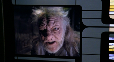 W. Morgan Sheppard works particularly well with Robert Picardo. Part of this is just the juxtaposition of the two characters; Qatai is a very serious man who very earnestly believes in what he is doing, while the EMH cannot wait to offer a snarky one-liner to puncture that earnestness. However, there is also a sense that Picardo and Sheppard bounce well off one another because they have very similar performance styles. Both Picardo and Sheppard are very good at broad and exaggerated banter, while plays well in the context of an episode about giant space monster.