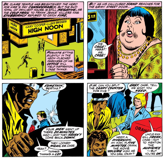 Initially, it is the supporting cast who transition between these versions of New York, marked by clear geographical transitions. When Misty meets with Luke in Harlem in The H Word, she explains that she has been assigned to a “city-wide task force.” This allows her to cross paths with Jessica Jones. Similarly, Foggy is now clearly a part of the upper-crust world of Danny Rand, working with Jeri Hogarth. When he visits with Matt in Mean Right Hook, Josie refers to him as “Mister Uptown.” These are very different worlds, but they coexist for characters willing to wander between them.