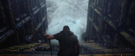 As with the portrayal of the biblical plagues in Exodus, the flood in Noah is treated as something horrific and awe-inspiring. It is not the validation of religious faith, instead presented as murder on a massive scale. Fists bang on the outside of the ark, begging to be spared. Bodies scramble from shelter from the rising waters, climbing over one another. Even after the initial flood, the sound of death linger in the air, the writhing and moaning of those who survived the initial cataclysm. The title character even leaves a young woman to die, caught in an animal trap; it is not a subtle metaphor.