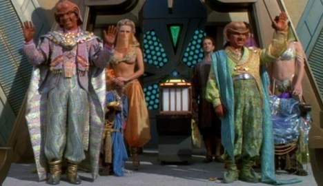 Deep Space Nine celebrated diversity and multiculturalism, encouraging characters like Quark and Worf and Garak to honor their cultures and their values. Deep Space Nine featured entire episodes focusing almost exclusively on Klingon characters on Klingon ships; Soldiers of the Empire, Sons and Daughters, Once More Unto the Breach. Deep Space Nine built episodes around an ensemble of Ferengi supporting players: Family Business, Little Green Men, Ferengi Love Songs, The Magnificent Ferengi, Profit and Lace.