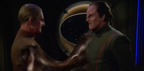 That said, I do think Deep Space Nine was consciously and overtly political. Even ignoring obvious message episodes like Past Tense or Chimera or In the Hands of the Prophets, the show was generally more willing to engage with big ideas than Voyager and in a more overt way. Sisko and Worf have an argument about multiculturalism in the middle of the otherwise pretty bland Sons of Mogh. And I’d much rather that a show like Star Trek wear its politics on its sleeve rather than trying to bury them or leave them unspoken. But then I’d argue that the majority of art is inherently political, and the only politics that are invisible to people are those they accept as fact.