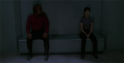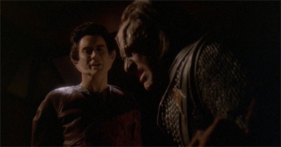 Penumbra, ‘Til Death do Us Part and Strange Bedfellows effectively comprise a three episode arc in which Worf and Ezri make a very serious mistake, and come to terms with it. The two characters follow the path of least resistance and hook up in Penumbra. Worf seems to be committed to the idea that they will get married and live together in ‘Til Death Do Us Part. It isn’t until Strange Bedfellows that Ezri acknowledges that they’ve made a mistake.