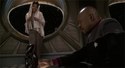 At the end of Penumbra, the Prophets warn Sisko not to marry Yates. “You must accept your destiny,” instructs prophet!Sarah. Sisko spends a significant portion of ‘Til Death Do Us Part trying to reconcile his own wish to marry Yates with the demands imposed by the Prophets. Kira makes it very clear that she believes that Sisko should listen to the Prophets. “The Prophets wouldn’t ask you to do something like that without a reason,” Kira states. “Well, what they’re asking you to do isn’t easy, but they’ve never led you down the wrong path.”
