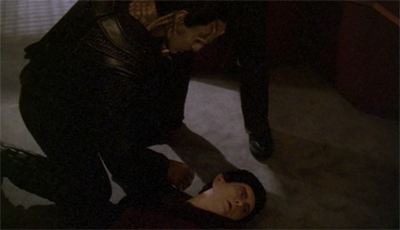 It is handily one of the funniest moments of DS9 (gallows humour, I guess). The suddenness of Worf twisting Weyoun’s neck is part of what makes it delightful (Worf is noticeably quiet as Weyoun draws in to threaten Ezri) but Damar’s hearty laughter and contempt for Weyoun’s corpse (“Pick that up.”) sells the scene. Damar’s mockery of Worf (“I’m sure you will.”) is likewise wonderful.