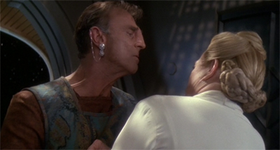 Strange Bedfellows is packed with these little moments. While the idea of marital conflict between Sisko and Yates is both clichéd and over-extended, it still provides a sense of a shared life between these two characters; it helps to underscore the existence of a family unit that will be torn apart at the end of What You Leave Behind. Similarly, while the ten-episode arc struggles with the question of what to do with Winn and Dukat, there is something strangely appealing about the idea of the pair lying in bed together eating slices of fruit.