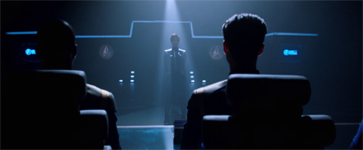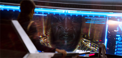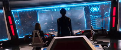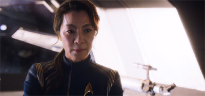 Georgiou advocates diplomacy, which will not work. Burnham advocates a show of force, which would play into T’Kuvma’s hands. Saru advocates retreat, but that is not an option either. “If there are Klingons in this sector, we should withdraw immediately,” Saru suggests. Georgiou cannot conscience the decision. “This is Federation space. Retreat is not an option.” Later, she outlines the stake, “There is a space station at Eagle-Twelve, three light-years away. The Andorian colony at Gamma-Hydra is six. Shenzhou is their only line of defense if the Klingons attack.”