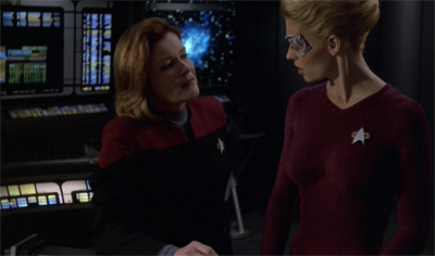 Still, even if Voyager was not moving backwards, it certainly was not pressing forward. Voyager believed that the future was static, that it flowed organically from the present and that it could never be disrupted or altered. This was reflected in a number of different was, most notably in the strong belief that Voyager could effectively continue to tell Next Generation stories for seven more years, without ever evolving or growing. Even the production design of the series was very clearly an extension of The Next Generation more than anything unique or innovative.