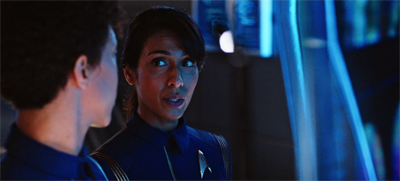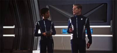 In contrast, Landry is eager to please. At the end of Context is for Kings, Landry recovered the tardigrade from the Glenn without informing the rest of the senior staff. “Thank you for beaming it aboard,” Lorca mused. Landry responded, “Anything, anytime, Captain.” That seems like an invitation to go “above and beyond” the call of duty, and is certainly more enthusiasm that Lorca has received from any other member of his senior staff. The implication is that Landry is Lorca’s most senior ally among the bridge crew.