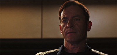 (It should also be noted, in terms of self-aware casting, that a large part of the legwork in establishing Gabriel Lorca as a sinister individual was accomplished through the casting of British character actor Jason Isaacs. Isaacs is a talented performer, but his screen persona has always been dispassionate and vaguely sinister. Isaacs is arguably most recognisable to American audiences for his work as a criminal in Brotherhood, as a collaborator in Harry Potter, and as the villain in The OA. So Lorca comes with a lot of baggage even before his ominous introductory scene.)