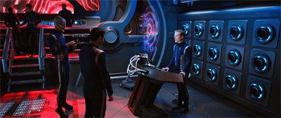 Indeed, there is a sense that this mirroring is reinforced by the climax of the episode. Burnham skilfully deduces that the tardigrade is the missing component of the spore drive, which leads to a sequence in which the creature is caged and harnessed. However, the sequence in which the engineering staff use the tardigrade to pilot the ship is played as something tragic and heartbreaking. There is a sense of cruel exploitation to the manner in which the Glenn and the Discovery have chosen to employ the tardigrade, recalling Rudolph Ransom’s activities in Equinox, Part I.