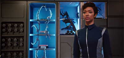 The tardigrade is also a very conscious nod to the pseudoscience of the original Star Trek series. “Your Ripper appears to share some natural traits with the Tardigrade species, a docile creature that lives in the waters of the Earth,” Burnham explains to Landry at one point. “A micro-animal capable of surviving extreme heat and subfreezing temperatures.” Landry is not convinced. “Did you say ‘microscopic’?” she asks. Burnham notes the contradiction. “In our case, somehow, macroscopic.”