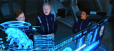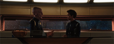 To be fair, part of the problem is Cornwell herself. The character seems like the stock “Admiral of the Week” from the Berman era shows, lacking the personality that made Alynna Nechayev or Bill Ross stand out on The Next Generation or Deep Space Nine. In terms of Bryan Fuller’s oeuvre, Cornwell seems the character most likely to be played by Caroline Dhavernas. There are shades of Alana Bloom from Hannibal to Cornwell, particularly in the reveal that she is a doctor and her interest in Lorca’s psychological well-being. But she is still hazily defined.