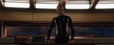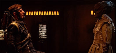 Choose Your Pain opens with a really awkward exposition scene, in which Lorca attends a briefing of senior Starfleet officials and seems to tell them information that they should already know in a rather blunt manner. “In less than three weeks, the Discovery has prevented the destruction of the dilithium mines at Corvan II, broken the Klingon supply line at Benzar, and routed an attack through the Ophiucus system,” he boasts. These are somehow all events that took place off-screen and involving a single ship rather than the larger fleet.