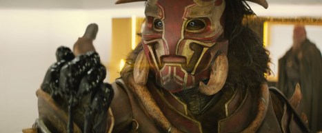 This applies as much to the Asgardians as to the Sakaarians. Cate Blanchett is the most prominent new addition to the cast, and her accent varies quite a bit over the course of the movie. Towards the climax, the actor’s Australian accent slips into conversation. New Zealand actor Karl Urban offers an exaggerated version of his own accent as the inept and cowardly working-class villain Skurge. American Tessa Thompson affects some vague Oceanic accent as Valkyrie. There is a sense that these accents serve to distinguish the Asgardians on the margins of the society.