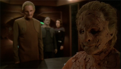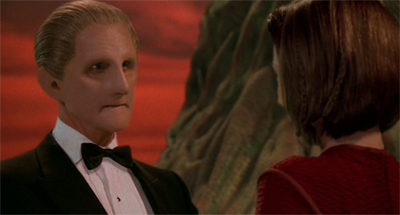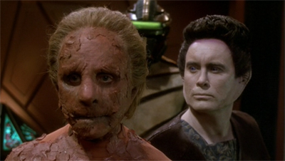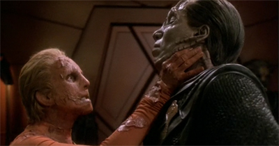 Even this dynamic between two supporting characters is nuanced and developed, reflecting who these people are on a fundamental level. When the Female Changeling is on the verge of collapse, Weyoun clumsily tries to comfort her. “My loyal Weyoun,” she smiles. “The only solid I have ever trusted.” It is almost tender. “I live only to serve you,” Weyoun states. “And you have served me well,” the Female Changeling concedes. “I would give my life to save yours,” Weyoun vows. The Female Changeling nods, wearily. “If only it were that simple.”