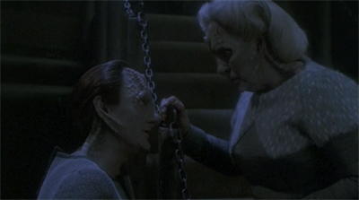 This is an interesting relationship. The Female Changeling clearly appreciates Weyoun’s faith and devotion. She obviously trusts him. More than that, there is some small indication that she actually likes him. However, the Female Changeling is perfectly capable of reconciling her fondness for Weyoun with a willingness to end his existence. If Weyoun could save (or perhaps even extend) her life by offering his, of course the Female Changeling would accept that bargain. The Female Changeling believes herself to be a god, even if she might occasionally smile on the mortals beneath her.