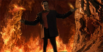 Of course, on paper, Sisko was supposed to prevent the Pah-Wraiths from laying claim to the Celestial Temple and wreaking havoc across the cosmos. “Soon the Pah wraiths will burn across Bajor, the Celestial Temple, the Alpha Quadrant,” Dukat raves as Sisko arrives. “Can you picture it? A entire universe set in flames, to burn for all eternity.” However, none of this feels tangible. It is three actors on a familiar cave set, fighting over a book prop, with some fairly standard computer-generated imagery in the background. It is underwhelming, to say the least.