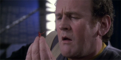 And Odo’s line – “I’m well aware that the Federation has its flaws, but a desire for conquest isn’t one of them” – isn’t exactly the best summary of his life on DS9. DS9 is not about whether the Federation was peaceful or belligerent – the show is actually quite vocal that the Federation as an institution is skrewed up. DS9 is all about human relation and individual decency, and it would have been more satisfying if Odo took one more minute to articulate this in the finale – something like, I know that the Federation has its flaws but I also came to know many solids can be trusted; we have differences but we’ve learnt to coexist with the difference; I’ve met up with hostility of some but also love and friendship of many; some solids engineered the disease, but some other solids risked their lives to get me the cure; being solids means they are all different individuals, the vice of some should not be projected to all… Given that one highlight of the premier was Sisko trying to explain the meaning of linear existence to the wormhole aliens, it would also have created some nice symmetry to have someone bridging the gap between solid and the liquid beings.