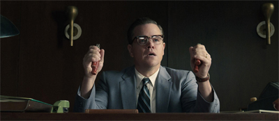 Perhaps Clooney’s most Hitchcockian touch, beyond the ice-cold blonde and her twin or the psycho-sexual energy simmering beneath the surface, is the use of metronomes throughout the film. Clooney tends to set his scenes to a rhythm and a beat, a tempo occasionally observed by an item within a shot in order to build tension; the stress relief tools that Gardner uses in his office, a toy in the aquarium during an awkward father-son chat, even a swinging light bulb as two characters discuss murder most foul.