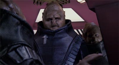 Tinker, Tenor, Doctor, Spy fits very much within this tradition. The episode is in some ways a loving ode to Star Trek fandom, as best demonstrated by the character of Phlox. The Hierarchy are a fascinating creation, and one of the most underrated recurring aliens on Voyager. They are transparently a single word concept expanded to an entire species – like “hunters” to the Hirogen or “polluters” to the Malon. However, the Hierarchy are not built around a “fun” or “exciting” concept. They are not a society of warriors or traders or death worshippers. They are a sprawling bureaucracy.