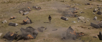 Ryan Coogler understands this weight and power. Black Panther opens with a conversation between father and son, suggesting that what follows is simply a tale of fantasy and imagination. Over a black canvass, the child pleads, “Tell me a story.” When the father inquires as to what story he might tell, his son promptly suggests, “Tell me a story about home.” The opening sequence of Black Panther presents an oral history of its fictional nation, one told in the sand and dirt that suggests the power and weight of history felt in land.