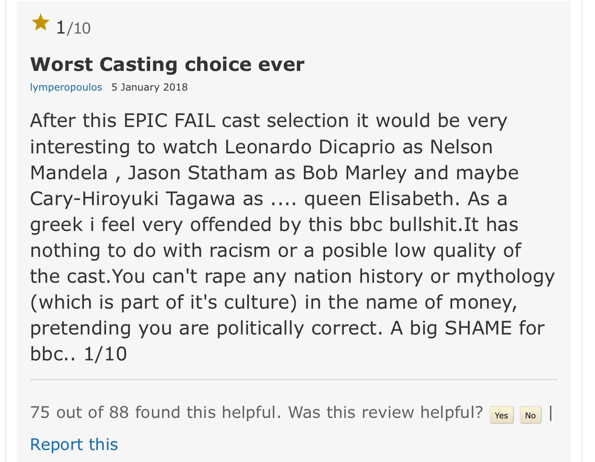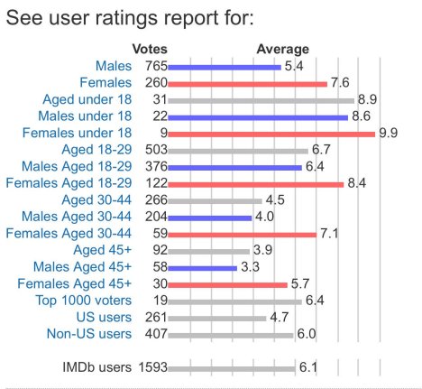 There is a strong reactionary element to the kind of users who vote on the Internet Movie Database, with user ratings often politicised. The nature of this politicisation varies. For example, The Promise, a movie about the Armenian Genocide was subject to similar vote-brigading. Beauty and the Beast, a live action remake of the classic cartoon featuring outspoken feminist Emma Watson similarly provoked a very strong reaction from male voters over the age of thirty.