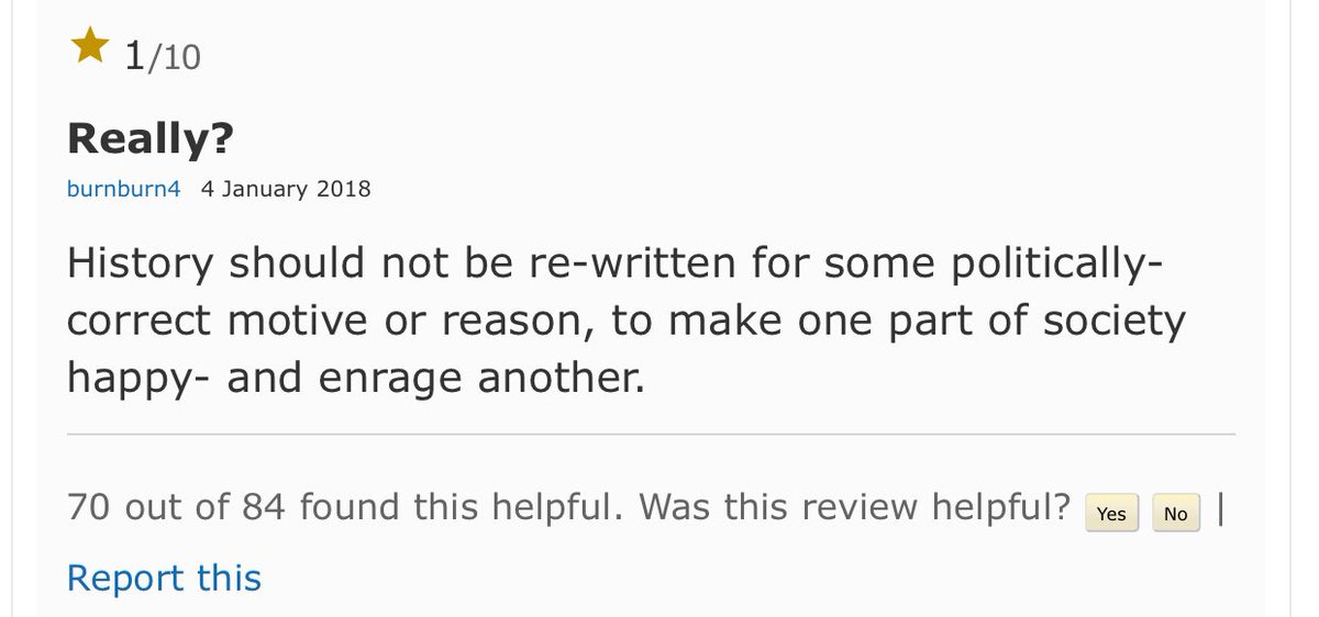 To be fair, the legitimacy of these campaigns have been questioned. It should be noted that films like Thor: Ragnarok and Avengers: Infinity War, movies that are far less overtly progressive than Black Panther or The Last Jedi, have largely avoided generating this sort of backlash. It is entirely possible that the campaigns to sabotage Black Panther and The Last Jedi are dogwhistle campaigns driven more by anger at their progressive politics than by the particulars of their corporate origin. Facebook have since clamped down on this attempt to organise vote-brigading.