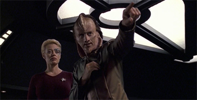 1. Excellent use of Neelix here. Normally, I find myself shouting, “mind your own business” at the screen, he’s just so ingratiating and pushy. Here, we see his persuasive skill come to the fore, wheedling the info he needs from Seven. Even his heritage comes into play, and not in an annoying way (My trademark Talaxian omelet…)