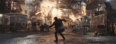 Ready Player One is a sugar rush, overwhelming the senses and moving fast enough that the ground seldom has the opportunity to fall out from under it. Momentum is key. The camera whirls and dives, sweeping across impossible distances and weaving through impossible spaces. Of course, the camera is moving through a virtual world, with no limit imposed upon it other than Spielberg’s imagination, and the director embraces the limitless possibilities. In its best moments, Ready Player One is dynamic, dizzying and dazzling.