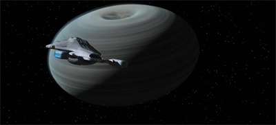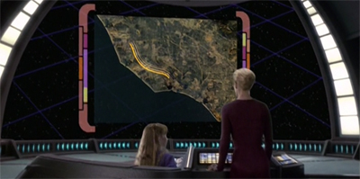 In contrast, Blink of an Eye suggests that Voyager exists outside of time, while these characters below live and die. “It’ll take a few hours to make the adjustments,” Torres remarks of plans to snap pictures from the planet surface. “A few hours?” Chakotay sighs. “We might miss the rise and fall of a civilisation.” Torres responds, “So we’ll watch the next one.” There is a sense that life is transient, that the world beneath Voyager spins and whirls, while Voyager remains above and outside of time.