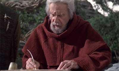 Blink of an Eye confines the entire history of an alien civilisation to a series of short vignettes, mostly shot on the same sets and using less than a dozen actors. There is something strangely intimate about the grand epic sweep of history portrayed in Blink of an Eye; the mountainside where the religion worshipping the “ground-shaker” is also the site of an attempt at first contact and also home to an observatory with its lens trained upon the “sky-ship.” In each case, a small number of characters interact with one another as a microcosm of an entire civilisation.