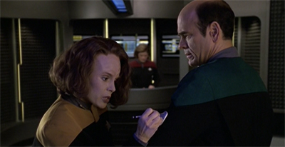 (Although Deep Space Nine did high-concept science-fiction less often than the other Star Trek series, it tended to compensate by filtering through a more personal perspective. Deep Space Nine often seemed to ask what these wacky high-concepts meant to individual characters, with the “O’Brien must suffer” episodes like Whispers, Visionary or Time’s Orphan feeling like meditations on what it would be like to be a person living through the crazy stuff that happens in the Star Trek universe; android doppelgangers, time travel, time distortion. Were Blink of an Eye a Deep Space Nine episode, it would focus on the EMH.)